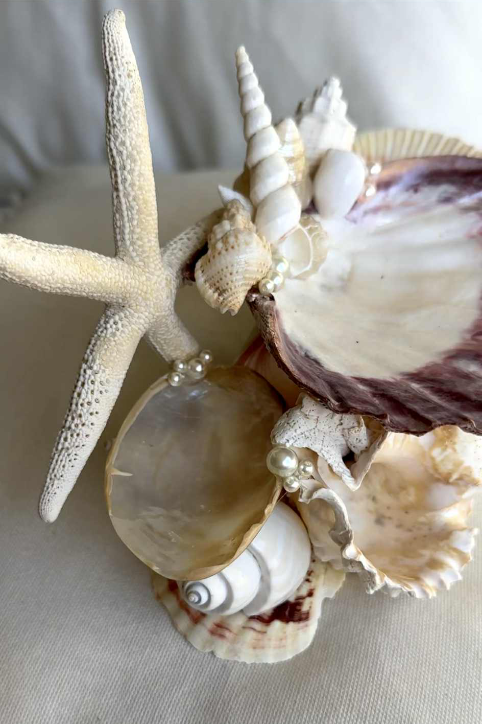 Slowly handcrafted using ethically sourced shells, each one was carefully and intentionally chosen for its natural beauty and unique ocean story. Interwoven together through many layers, this seashell stand creates a timeless sanctuary for your most cherished jewels.