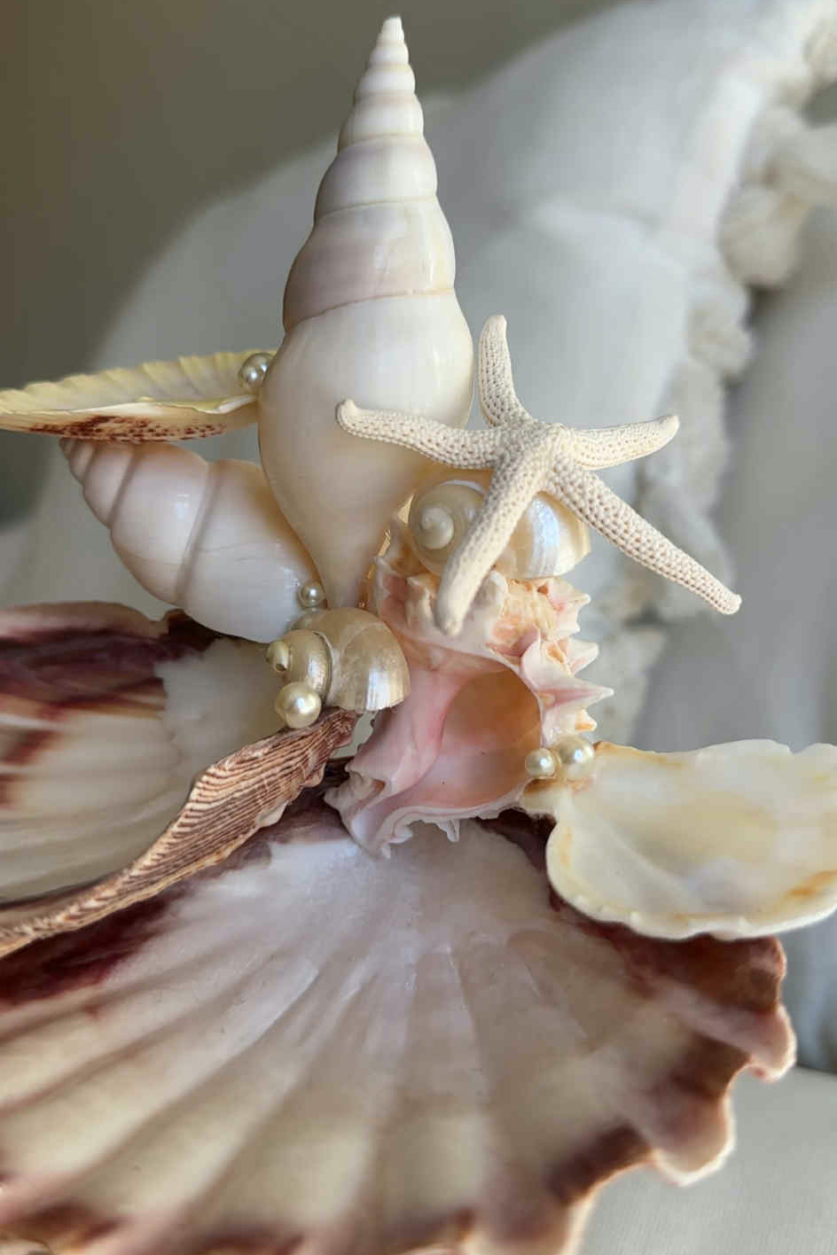 The crown jewel of the collection, Iseala’s Treasure is a statement piece born of the sea’s most beautiful offerings. Crafted with intricate layers of rare and striking shells, it is designed to hold and display your most precious jewels. Each stand glimmers with pearls, textures, and artistry, echoing the grandeur of treasures hidden deep within a siren’s cove.